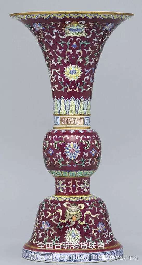 乾隆胭脂红地粉彩八吉祥纹花觚(40-60W)
