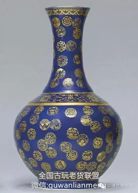 光绪蓝地描金团花纹赏瓶(6-8W)