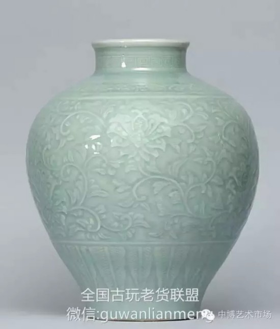 清18世纪粉青釉缠枝莲纹罐(15-26W)