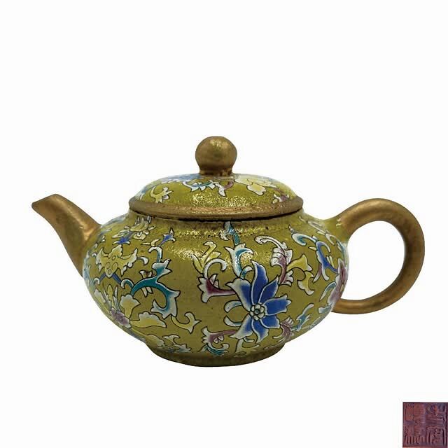 Lot6:清代 黄地粉彩花卉纹八棱盖罐