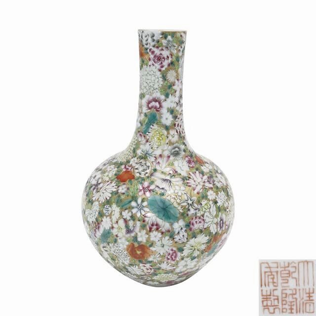 Lot8:清代 粉彩八仙过海福寿纹天球瓶