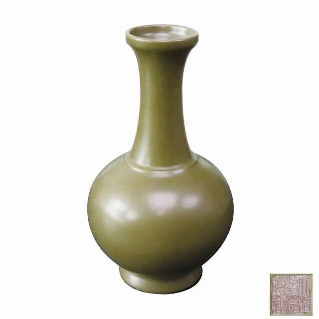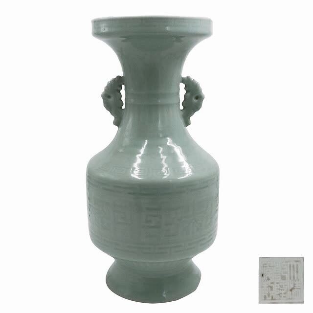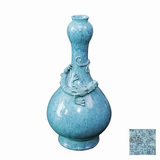 Lot27:清代 松石绿釉宝相花如意耳瓶