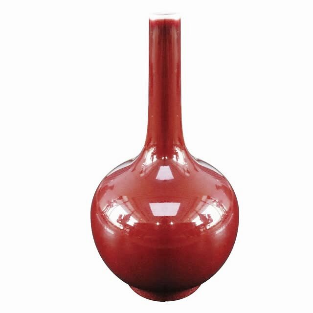 Lot33:清中期 牛血红肩鼓束腰梅瓶