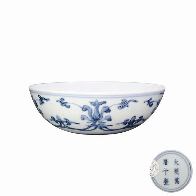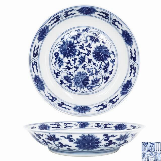 Lot9:清代 霁蓝釉描金双喜如意纹碗