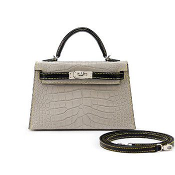 爱马仕珍珠灰色拼黑色哑光短吻鳄皮20公分迷你凯莉包二代,具爱马仕定制马蹄印,配镀钯金属件,2021年