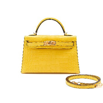 爱马仕金合欢黄哑光短吻鳄皮20公分迷你凯莉包二代,配镀金金属件,2021年