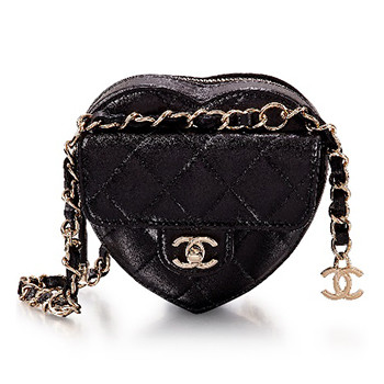 香奈儿黑色菱格纹小羊皮迷你CC In Love心形腰包,配淡金色金属件,2022年