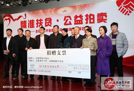 中安在线讯据安徽网报道, 12月18日下午, 一场别开生面的拍卖会在合肥师范学院举行。22件由我省书画名家和在校大学生精心创作的22件书画作品参与竞拍,拍得的5万多元善款被捐给“安徽希望工程?苏明娟助学基金”。