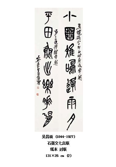 临书的乐趣不仅仅局限于对原帖的追摹,更体现在集字成章上,昌硕即是最突出的代表。缶老醉心《石鼓文》,但石鼓存字有限,篇章又难以通读,因而往往集字成联来展现石鼓文的风貌。《小囿平田》联便是这样的作品,“小囿雉鸣逢雨夕,平田鱼出乐花朝”,既通过集字表现出了美好的意象,也展现了对《石鼓文》疑难字的解读与认识,何乐而不为呢?钟情于古文字的书者,大多乐于采用这样的方式来临书,不仅能展现临书的心得体会,还能展示自己在文字和文词上的研究。在这样的风尚之下,类似的书作繁如星斗,名家辈出。国民党元老胡汉民晚工曹全碑,极神似,集字为诗如己出。西泠印社创始人之一的王福庵更是对集词句为联文的文人游戏乐此不疲,有大量的集宋词句成联的篆隶作品存世。