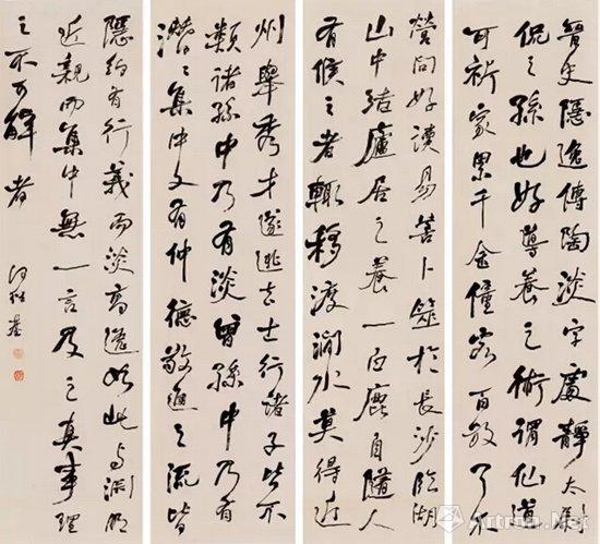 何绍基 《草书四屏》 水墨纸本,142×39 cm ×4 无底价