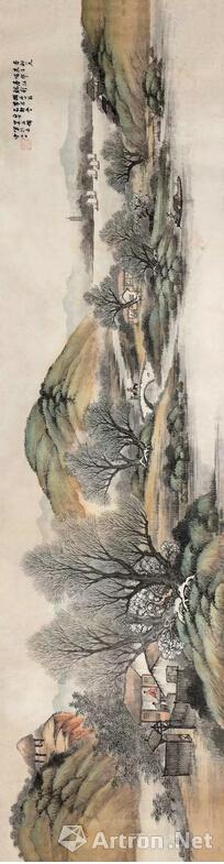 吴石仙 《春江帆影》 设色纸本,43×159cm 无底价