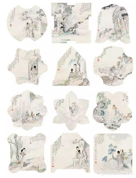 钱慧安 《仿古人物双挖六屏》 设色纸本 估价:RMB60,000-80,000