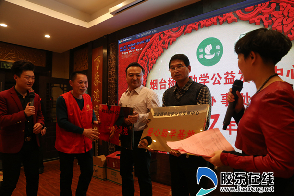 1月21日晚,莱阳扬帆助学志愿服务队120多名志愿者欢聚一堂举行年会,采取书画义卖的方式筹集善款建立爱心资助基地,莱阳市沈家初中和榆科顶初中成为首批爱心助学基地。