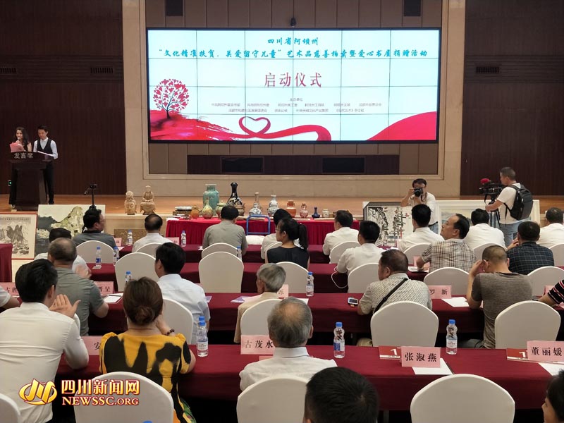 四川新闻网成都7月23日讯 (记者 雷兹 摄影报道) 7月23日下午,阿坝州“文化精准扶贫,关爱留守儿童”艺术品慈善拍卖活动暨爱心书屋捐赠启动仪式在成都举行。据了解,此次拍卖的善款,将定向用于阿坝州爱心书屋建设。