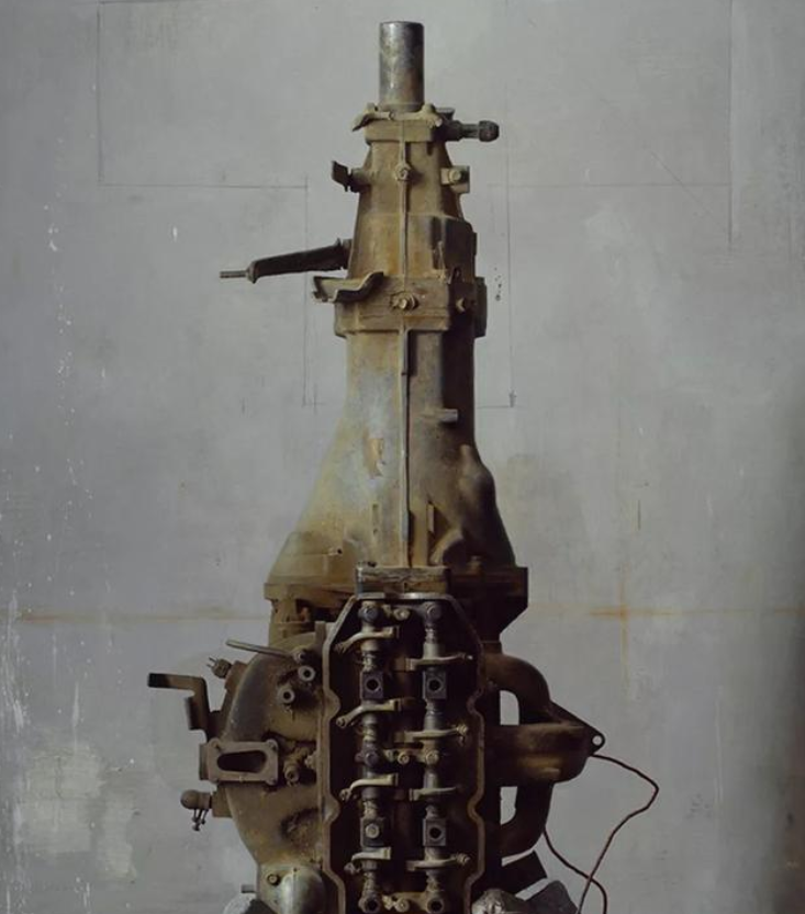 1897万,这是个什么概念?是衣食无忧?还是声名远扬?在2011年,北京保利春拍卖会上,1897万元一锤定音的那一刻,人们都瞠目结舌,瞪大了双眼。这幅被拍出高价的画作,就是冷军先生的《文物》,人们喜爱称这幅画为“发动机”,一方面这幅画的主体是一台发动机,是冷军先生以发动机为主体创作的。其次这个名字听起来比较接地气,能够中和一下1897万元高价带给它的高光。这幅作品依旧是冷军特色的极端写实主义,想要表达的是工业文明主题。这幅作品静默无声,竟也能给人传递出一份静默,这大概就是这幅作品能够收获“高光”时刻的原因吧。