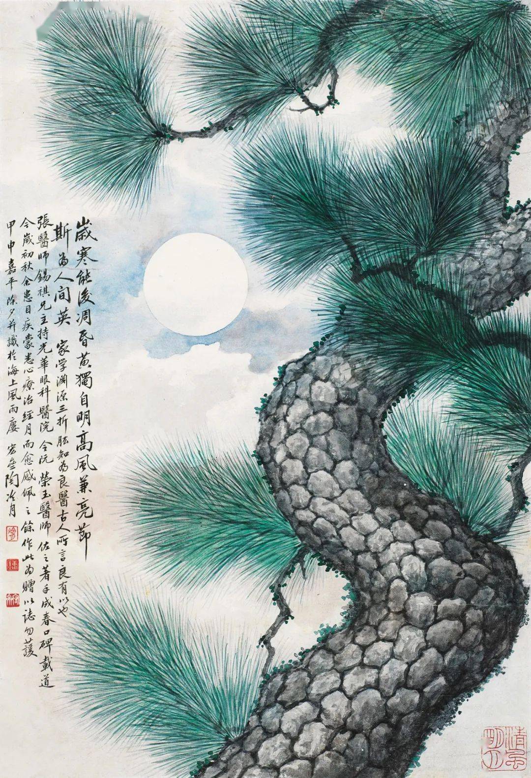 说明:《陶冷月年谱长编》上册296页记:1945年初秋患目疾,经光华眼科医院院长张锡祺悉心治疗而愈,作《松月图》题赠致谢。