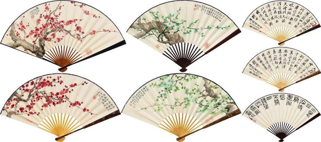 陶冷月(1895—1985) 红梅 绿梅 坤扇 对扇 四把