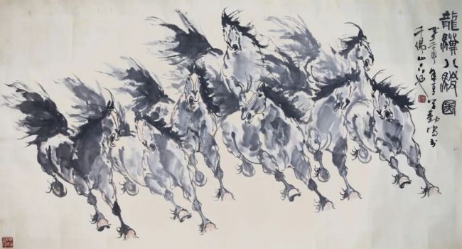 吕学勤 镜心纸本设色 款识:龙骥八骏图 钤印:吕学勤印 尺寸:146×80cm