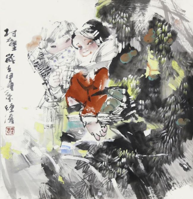 陈伟 立轴纸本设色 款识:村童 钤印:陈伟唯印 尺寸:69×67cm (来源:山东鼎艺)