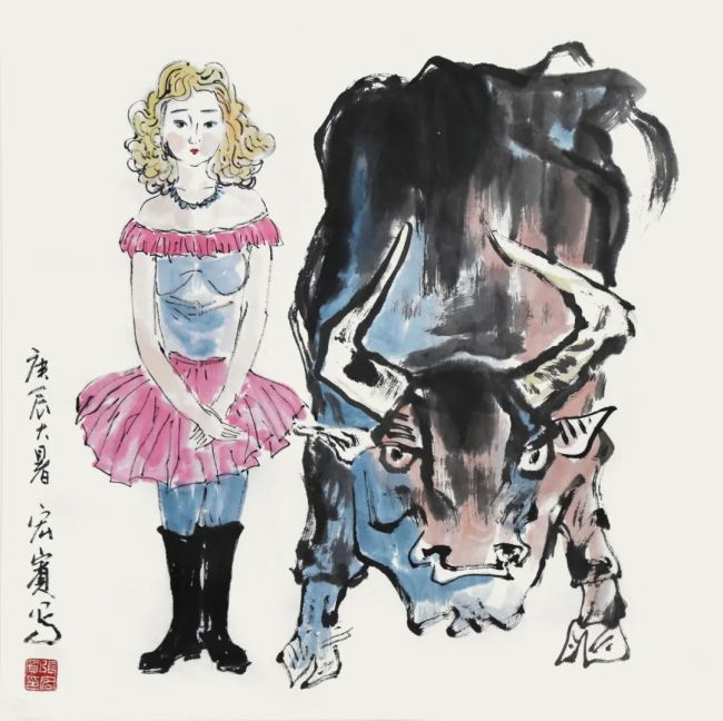 张宏宾 立轴纸本设色 款识:庚辰大暑宏宾写 钤印:张宏宾印 尺寸:68×68cm