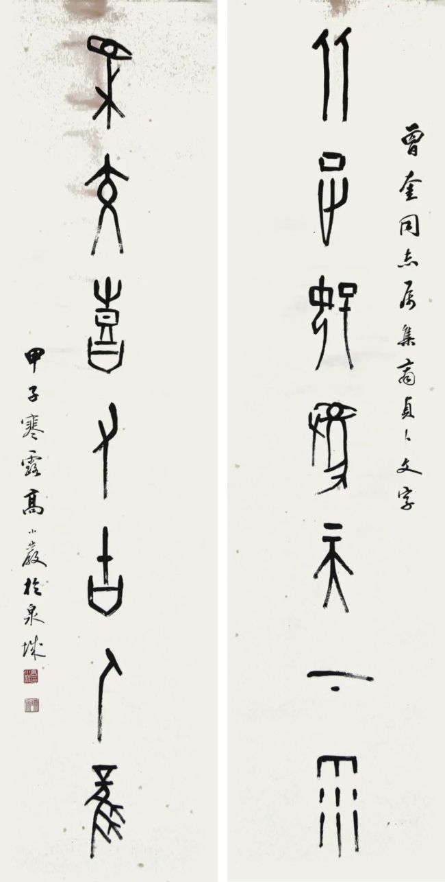 高小严 对联纸本设色 款识:甲子寒露高小严于泉城 钤印:高小严印 尺寸:32×134cm