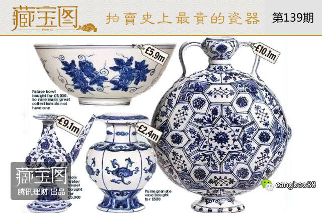 作为瓷器的故乡,精美绝伦的中国瓷器从上世纪起就受到了收藏界的热捧,最近英国乡绅收藏的百件瓷器更是拍卖出了近5亿人民币,其中仅是明代青花的一件“月壶”就拍出了1100万英镑的高价。其实,中国瓷器在国际上拍出高价早已屡见不鲜,那么今天,《藏宝图》(微信公众号ID:cangbao88)就和您一起来看看拍卖史上最贵的十件瓷器吧!