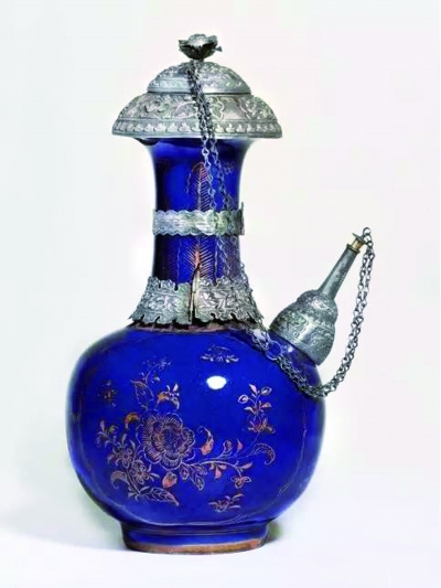 清 康熙霁蓝釉描金折枝花纹瓶