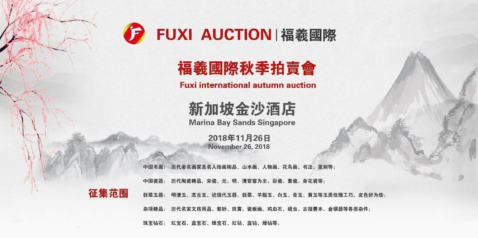2018新加坡福羲国际物宝天华6周年秋季拍卖会预告: