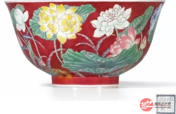 乾隆帝的爷爷康熙也喜欢喜庆一点的碗。一只清康熙御制胭脂红地珐琅彩莲花图碗曾亮相2013年香港苏富比春拍,先以4000万港元起价,经过几轮竞价,最终以6500万港元落槌,虽然低于此前预计的7000万港元成交价,但还是刷新了康熙时期瓷器拍卖的记录。