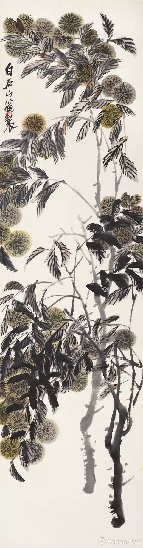齐白石(1864-1957) 麻栗图 131×34cm 成交价:HKD 3,540,000