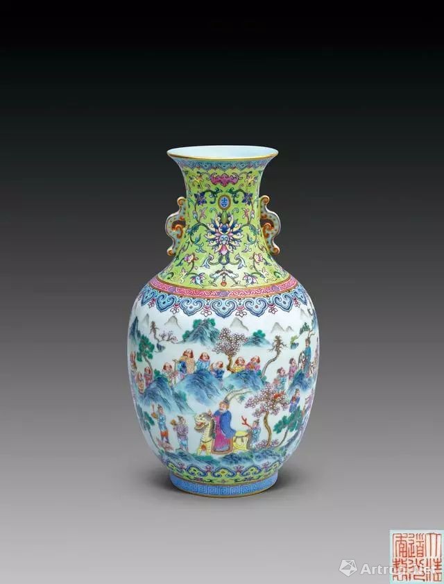 清道光 粉彩八蛮进宝图双耳瓶 H 28.5cm 成交价:HKD 7,080,000