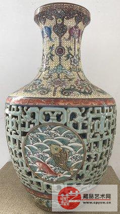 清乾隆粉彩镂空“吉庆有余”转心瓶