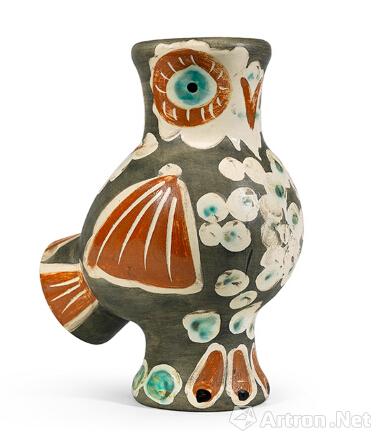 图为此次上拍的名家毕加索杰作《猫头鹰》(Chouette)。图片来源:苏富比。 2015年3月18日,伦敦苏富比将举办《巴勃罗·毕加索陶瓷艺术珍品》(ImportantCeramicsbyPabloPicasso)主题专场拍会。届时,花瓶、陶罐、盘碟、陶碗等一系列独特新奇的珍贵藏品将竞相亮相,以展现毕加索这位现代艺术大师幽默风趣的一面。本次拍会共呈献约150件精致名品,拍前估价从800英镑至5.5万英镑(约合人民币7423元至51万元)不等,预计可满足不同藏家和艺术爱好者的需求。 苏富比欧洲区版画负责人赛维林·奈克斯(SéverineNackers)表示:“这些上拍藏品很好地概述了艺术大师毕加索人生中最后25年的愉快时光。我们非常荣幸能够在此次拍会中呈现由他制作完成的每一类陶瓷杰作。” 1946年,毕加索于法国南部度假期间,在瓦洛里(Vallauris)小镇参观了马杜拉陶器(MadouraPottery)工坊,遇到了工坊主人苏珊娜(Suzanne)和乔治·莱米(GeorgesRamié),并进行了有关粘土制陶的沟通和交流。他们谦逊友好的姿态和言语激发了毕加索的想象力并点燃了其与莱米建立工作关系的欲望,数千件精美陶器由此产生。毕加索在该地区度过的岁月被认为是其一生中最快活的日子;这位艺术大师曾告诉他的传记作家皮埃尔·戴(PierreDaix)马杜拉让他有了一种宾至如归的感觉。