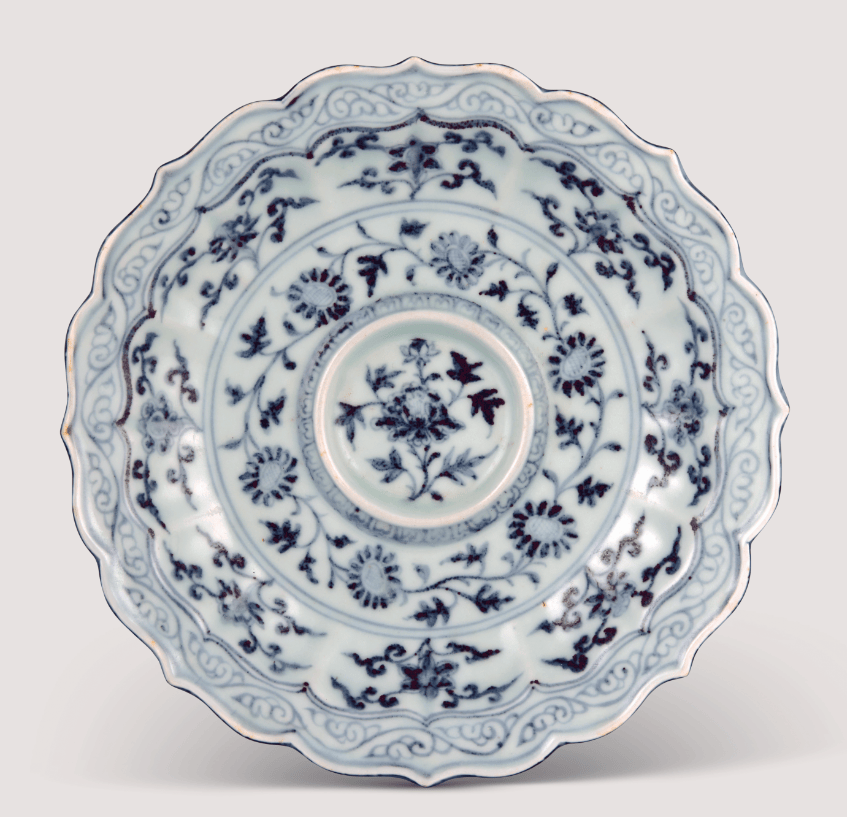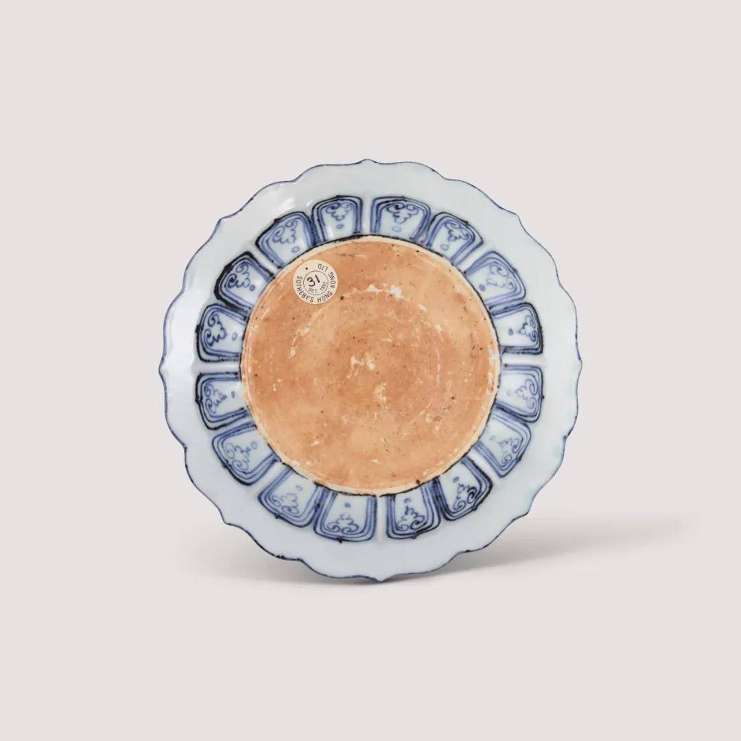 明洪武 青花缠枝花卉纹菱口盏托背面
