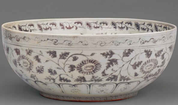 本件拍品另一重要看点便是其显赫的来源背景。在1994年出版的ESKENAZI精品展览中,是件洪武釉里红大碗不仅占据了主要位置,而且曾引起学术与商业两界的广泛探讨。朱塞佩·埃斯凯纳齐(Eskenazi), 1925年创建其古玩生意于意大利米兰,1960年在伦敦开设第一家海外分店,1970年成为国际顶级艺术品收藏和经营机构。他从17岁开始就表现出了对艺术品的浓厚兴趣,当时他还只是他叔叔Vittorio的助手,1952年他去伦敦求学,为他日后鉴赏中国、日本等东方艺术品奠定了坚实的底蕴。他接手家族公司之后开始快速发展,尤其令人瞠目结舌的是其创作的一个又一个艺术品拍卖纪录。相信这一次我们带来的这件Eskennazi先生旧藏会为广大藏家带了一份新的收获。