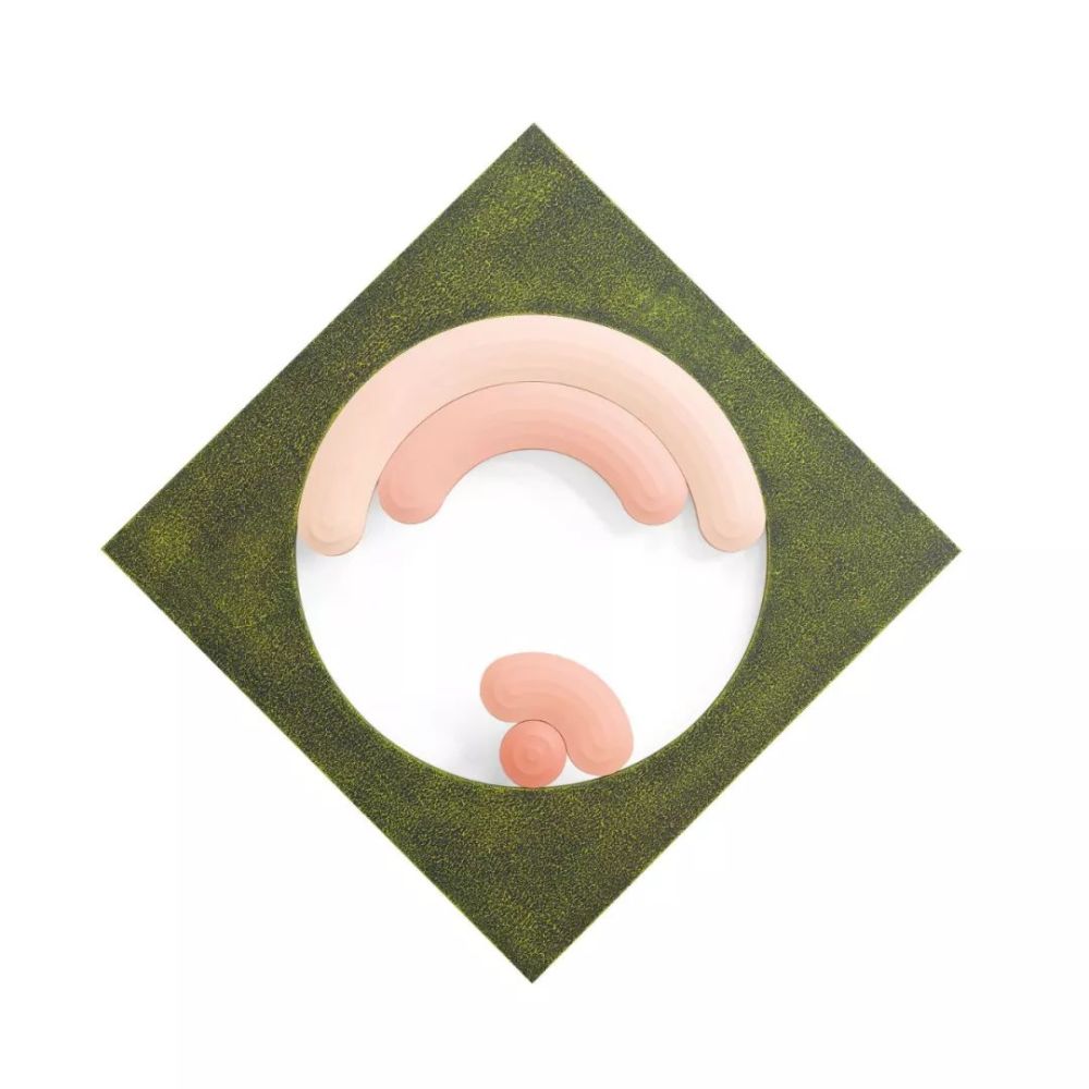 来自纽约布鲁克林的艺术家乔希·斯博林,由于有家具制作和平面设计的背景经验,使得他创作出独特的3D形状画布,其外形极为别致迷人。艺术家称这种画布为“雕塑画”。斯博林将他对颜彩的兴趣,同上世纪60年代的家具设计和几何抽象融合一体,在作品中成就了一种丰富的感性叙述。《梦境机器》是一幅活力四射的佳品,将艺术家独到的创作形式例示得淋漓尽致 —— 弯曲蠕动的线、涡旋和异趣的几何形状的结构结合,显得画面格外生动而有机。