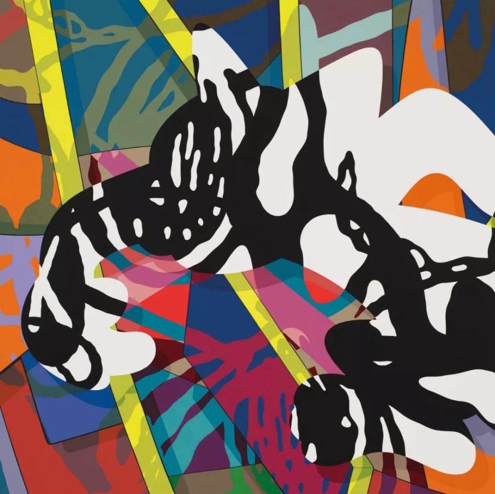 KAWS是当代艺坛中最懂得突破创作传统的艺术家之一,他擅长以大胆奔放的线条和明艳的色彩重塑流行文化中的偶像和标记。KAWS曾经表示:“对于明白多种事物的人来说抽象是什么?如果你看见一件对象,就已经知道它是什么了,那还算是抽象吗?你只要看懂它的姿态及运作,再从绘画史中寻找与其相连的关系,就能参透个中的意义。”KAWS于2016年创作的《VANQUISHED》2018年创作的《METICULOUS》介于抽象及表达之间,具有鲜明强烈的色彩,极富动感和活力。两件作品都显示了艺术家在颜彩选用上的特色:深绿色、酒红色、苔藓绿和海军蓝,再透过交错闪现的霓虹橘色来平衡和协调。