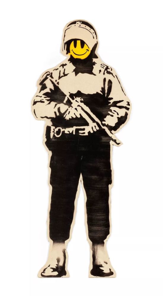 最后,当然不得不提近来在市场上炙手可热的艺术家班克斯。尽管身份成谜,班克斯那刺激人心的图像却是街头艺术中最具代表性和争议性的作品。20多年来,他的创作表述传遍全世界,其作品曾出现在约旦河西岸地区的边墙、美国加州的迪斯尼乐园、博物馆和多处公共场所。班克斯的作品以明晰的视觉语言见称,且具普世特性,因此让其匿名身份更引起观众们的探索兴趣。他透过简单却又强有力的视效主题,以大胆的创作平台针贬时事,并拒绝为他的倡议活动代表具名。在12月班克斯香港展览举行前夕,佳士得将在此次秋拍上呈献一件班克斯的经典早期作品。