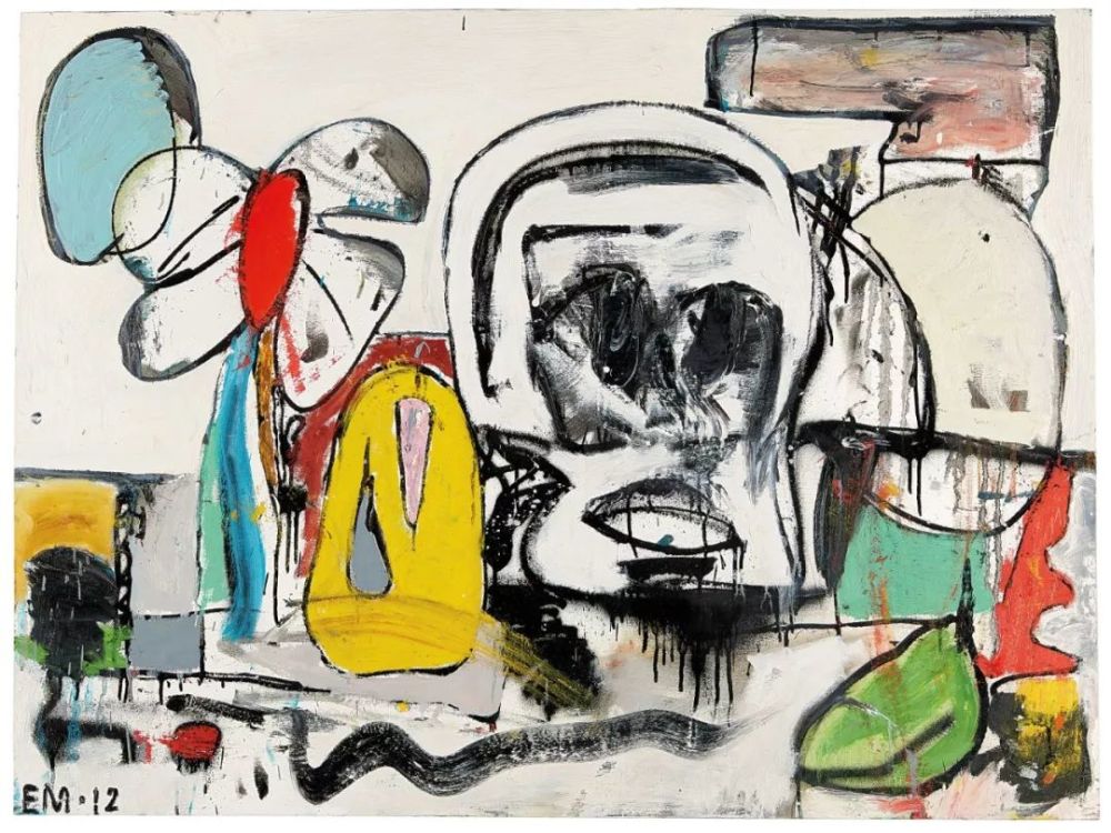 和KAWS一样,艾迪·马丁内斯同样于创作中对色彩进行探索,并开辟了全新的抽象视觉语汇。马丁内斯向来以他画作和雕塑作品中活力充沛的线条和精妙的颜彩处理著称,他的灵感泉源多元、影响互融,通俗城市文化、抽象表现主义和超现实主义等在其作品中交汇。2014年创作的《高空飞行的鸟》宽度超逾三米,此生动壮观之作为马丁尼斯直观奔放的艺术手法的典范,更是有史以来现身拍场的最大马丁内斯作品。各种形状和大小的主题呈现于画布之中,整个作品透过这些舞动的翠绿、暗紫、嫩粉红、棕色及蓝色显得意兴勃勃。