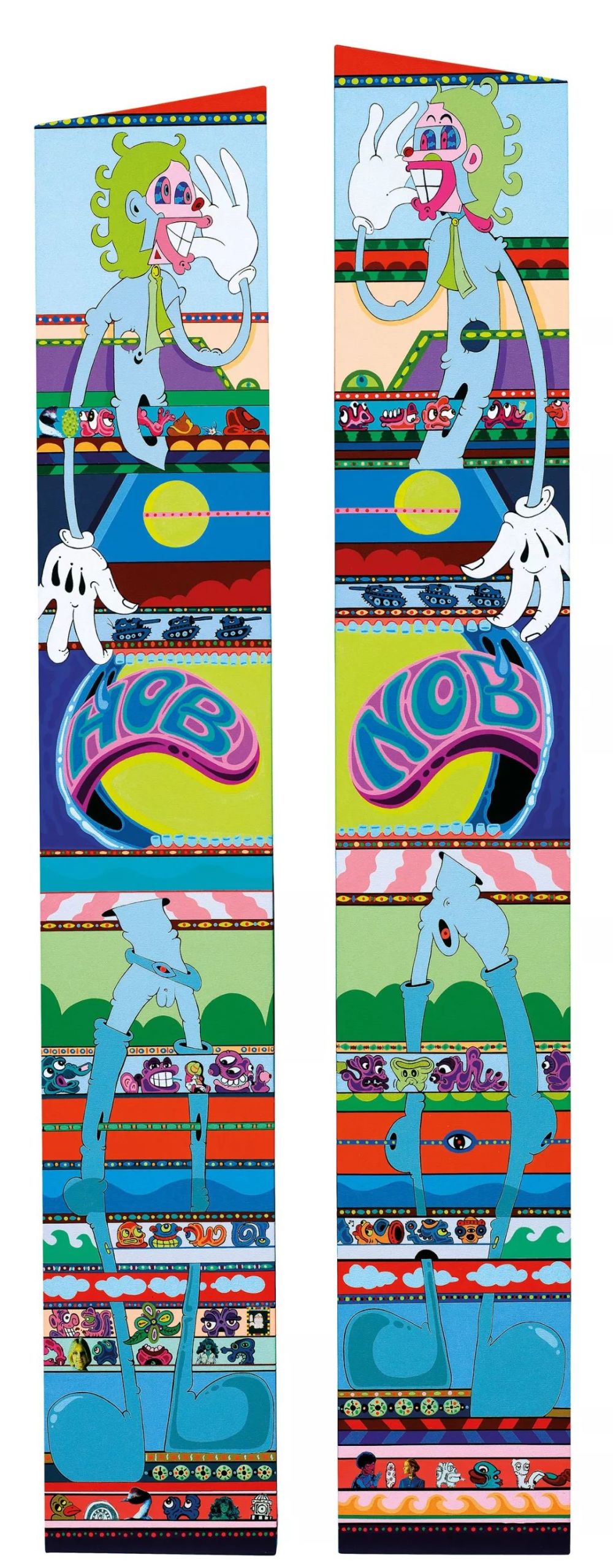 KAWS最广为人知的COMPANION角色以“X”符号取代眼睛和戴着手套的双手,而此次上拍的两幅作品都具有KAWS特色的X,但其意义不再代表眼睛或手套。正如艺术家所解释的,抽象的意义应该由品画者来参透。