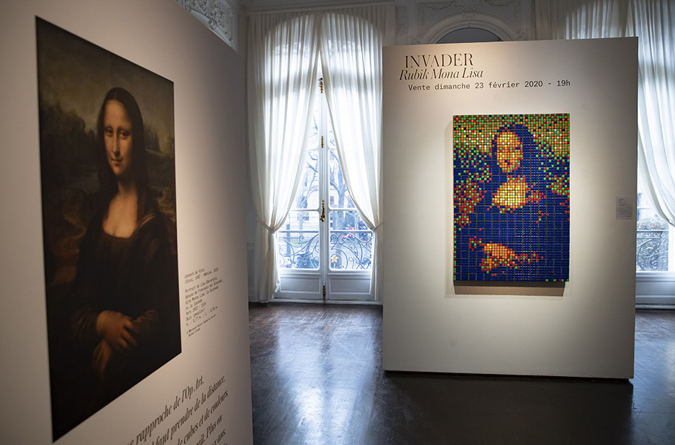 【环球网文化频道综合】当地时间2020年2月4日,法国巴黎,街头艺术家 Invader 的一件题为“魔方蒙娜丽莎”(2005)的艺术品在巴黎艺术拍卖行展出。这件由330个魔方组成的艺术品描绘了达芬奇著名的蒙娜丽莎,预计在本月23日的拍卖会上进行竞拍,预期拍卖价为15万欧元(约合116.3万元人民币)。(图源:东方IC)