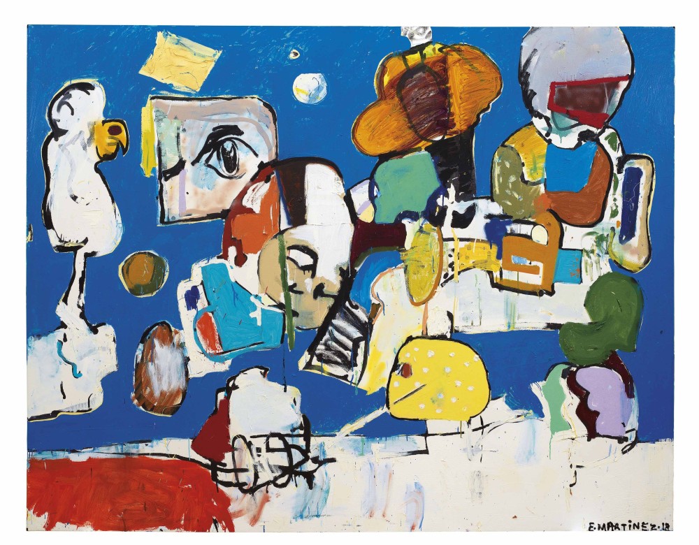 艾迪·马丁内斯(Eddie Martinez)本季有10件作品,其中9件超估价成交,拍得近2700万港元。与动辄几千万、甚至上亿的西方大师相比,这个金额谈不上有多高,但马丁内斯却是本季除刘野和奈良美智外,第三个在三家国际拍卖行的日夜场均有作品上拍的艺术家,而且其中大多数都取得了超估价成交的好成绩,人气之高可见一斑