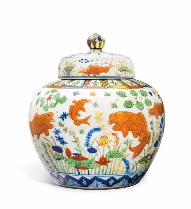 明嘉靖 五彩鱼藻纹盖罐 成交价:213,850,000 港元