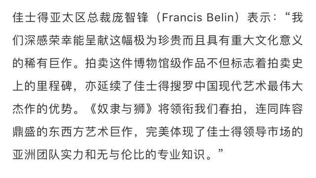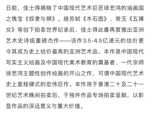 徐悲鸿 奴隶与狮 素描 47.5 x 63 cm 1924年 北京徐悲鸿美术馆藏 佳士得亚洲艺术杰作重要拍卖纪录 苏轼《木石图》 成交价:463,600,000 港元