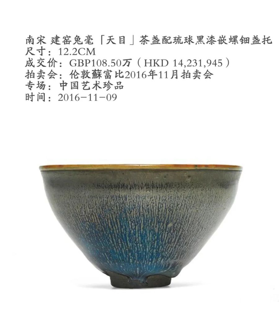 如今的文博界与收藏界中,茶盏,无疑是文物实用器中的明星,颇具收藏价值。其中,宋代曜变天目釉茶盏就被日本奉为“国宝”,而在拍卖场上,茶盏也以5000多万港币拍出。今天,就为广大藏家整理出了史上最贵10件茶盏,以供作收藏参考之用。