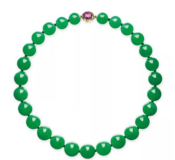 共串27颗天然翡翠 ,配镶一颗椭圆形粉色蓝宝石