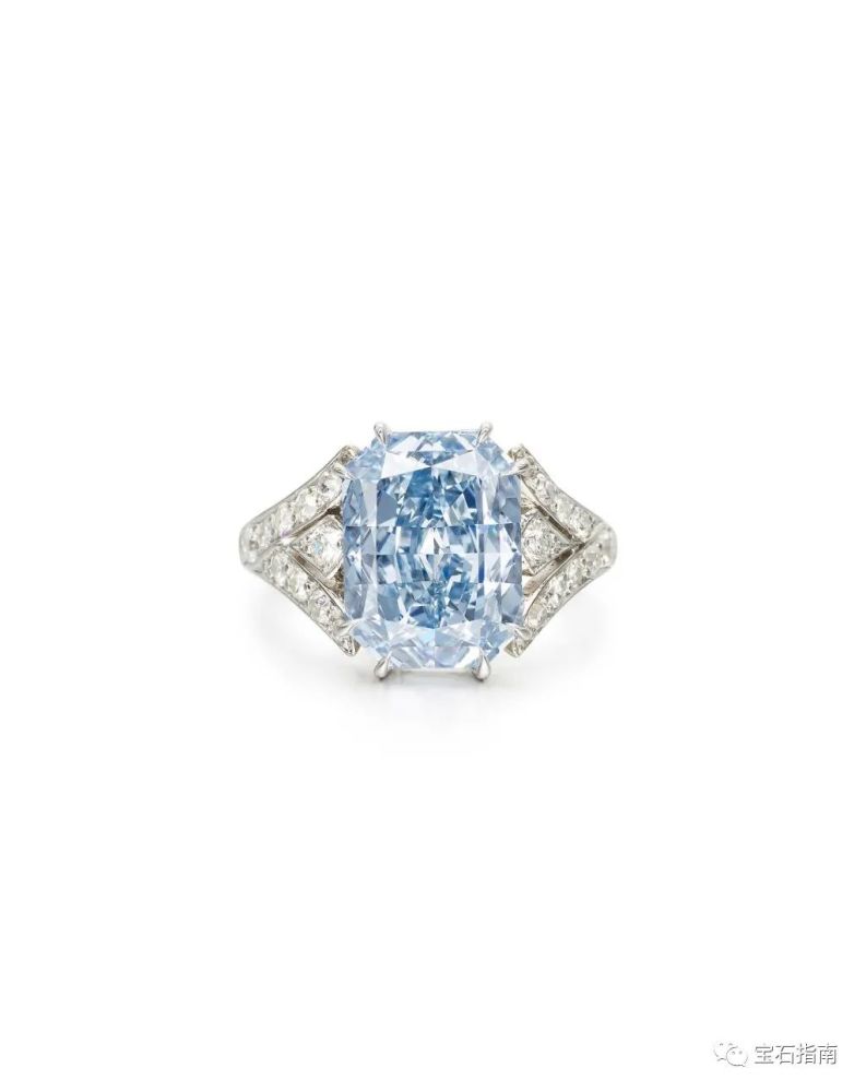 切角矩形改良明亮式切割浓彩蓝钻重约5.22克拉