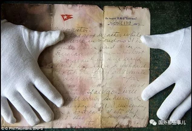 一封来自泰坦尼克号沉没前写的信 拍卖的价格破纪录