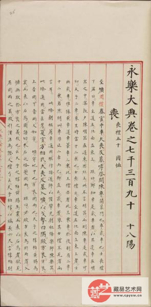 《永乐大典》编撰于明朝永乐年间,初名《文献大成》,是由解缙、姚广孝等担任总纂修,历时六年(1403-1408年)编修完成的旷世大典。全书22877卷,目录与凡例60卷,分装11095册,共约3.7亿字,汇集了古今图书七八千种。永乐年间修订的《永乐大典》为正本,嘉靖年间抄写的为副本。但《永乐大典》正本不知去向,亦未曾发现正本实物存世,副本屡遭厄运。截至目前,《永乐大典》副本仅发现有400余册、800余卷及部分零叶,分散于多个国家和地区公私藏家手中。