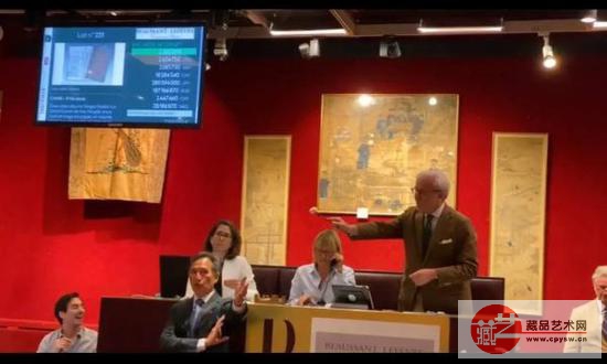 北京时间晚上11时许,现场以5000欧元起拍,两分钟内价格就直冲到70万,最终以640万欧元落槌,含佣金812.8万欧元。由一名华人女性竞得。